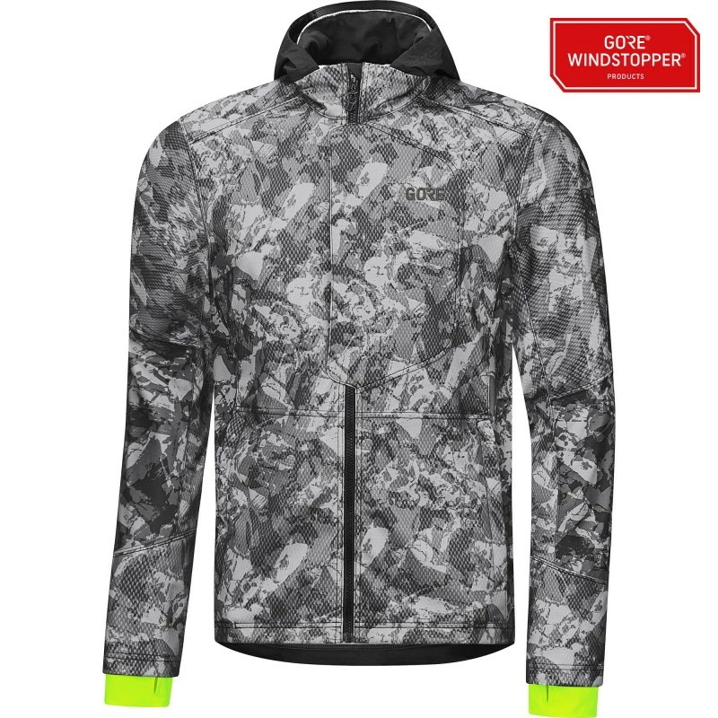 Cette veste Gore Wear C3 Windstopper Urban Camo est dotée de nombreux éléments réfléchissants, pour la sécurité de son utilisateur, et de plusieurs poches zippées bien pratiques.