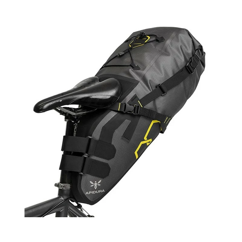 La sacoche de selle bikepacking étanche Apidura Expedition 17L permet aux aventuriers du vélo de voyager léger tout en bénéficiant d’une capacité de rangement très confortable pour leurs affaires ! Elle s’associe idéalement aux autres sacoches Apidura Expedition (cadre et guidon).